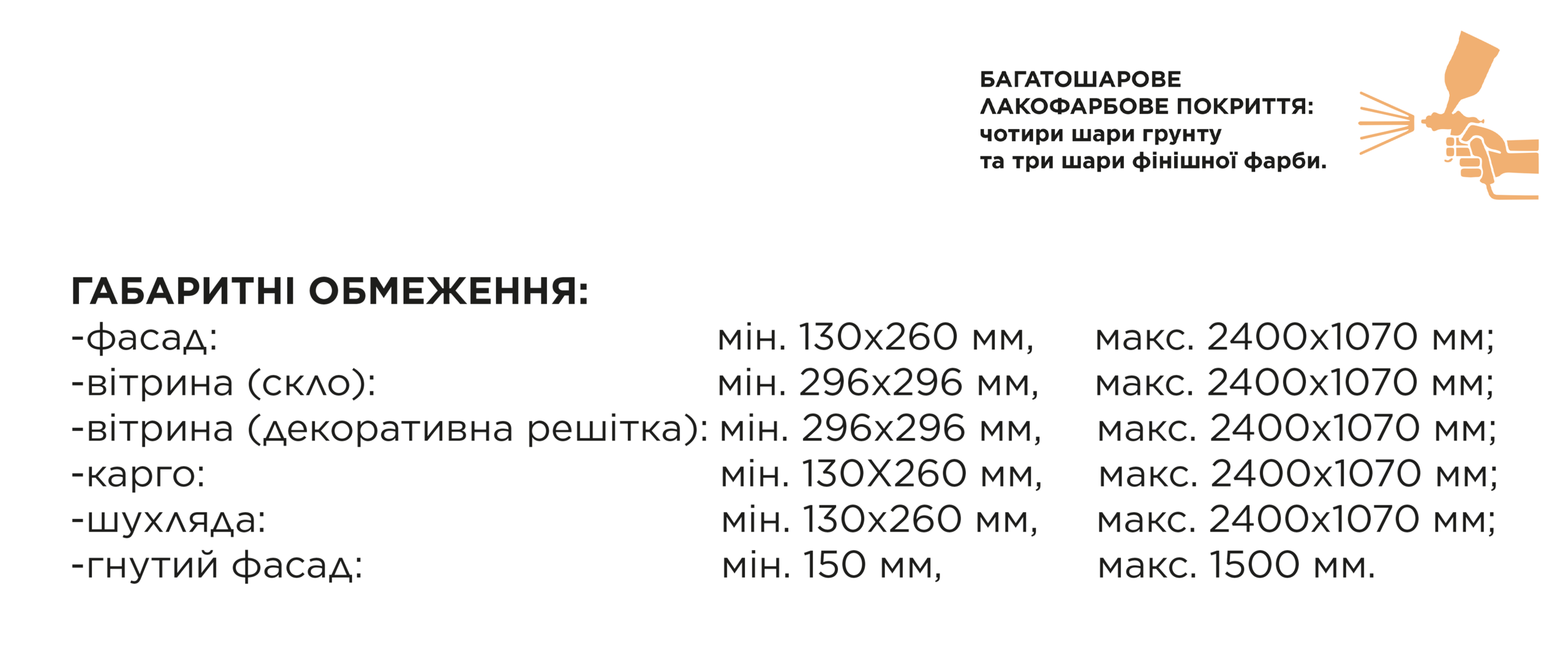 - Закази менші, ніж 1м² розраховуються по ціні, як за 1м²;