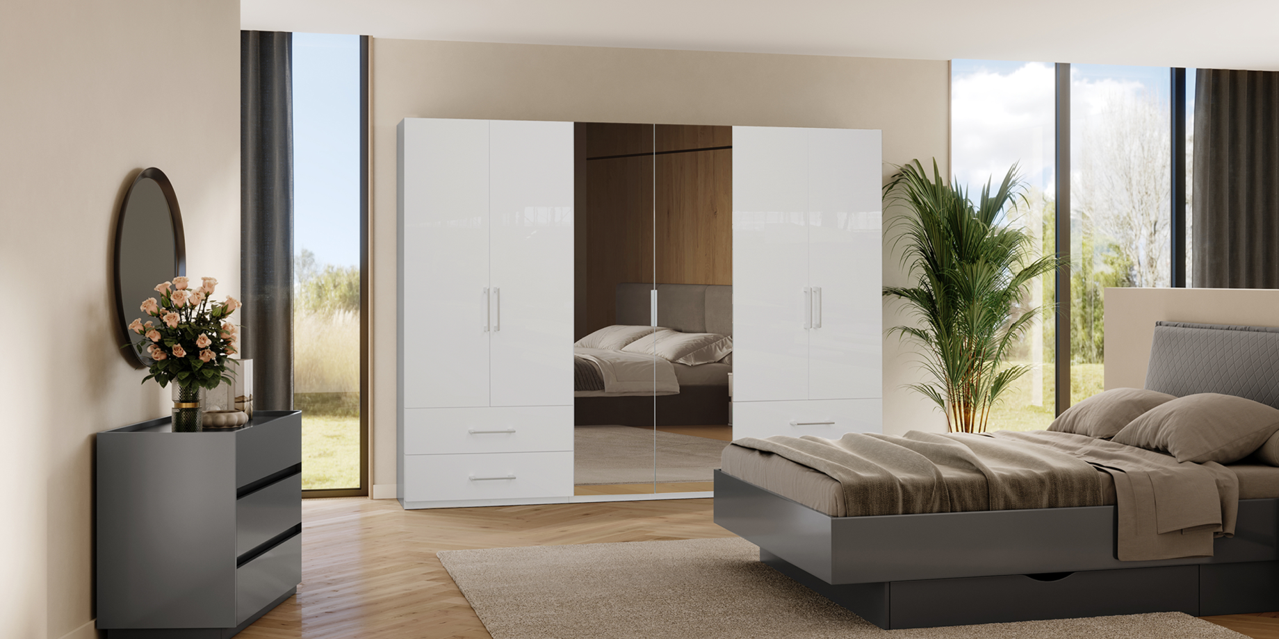 - Опція з дзеркальними фасадами або без – обирайте варіант, який найкраще відповідає вашому інтер’єру: