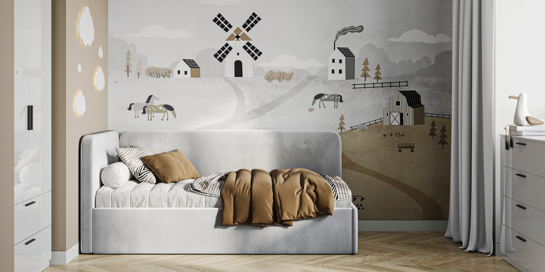 This collection includes a single bed with two pull-out drawers and a strong frame. For your choice – standard hard or soft velor upholstery. It is very convenient that you can put the most necessary things in the drawers – a blanket, bed linen or pajamas, maybe even your favorite toys. For the safety of children, the corners of the bed are rounded. And we also predicted left and right side of the frame for your choice, because the planning of the children’s room is individual for everyone.