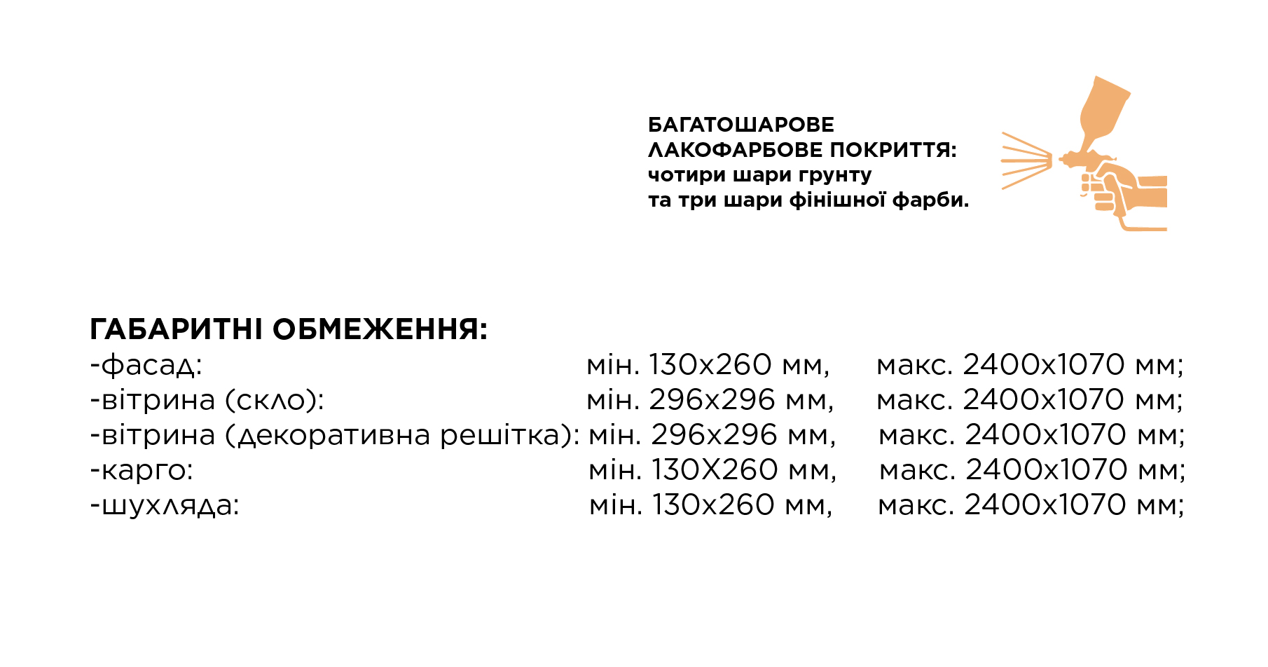 - Закази менші, ніж 1м² розраховуються по ціні, як за 1м²;