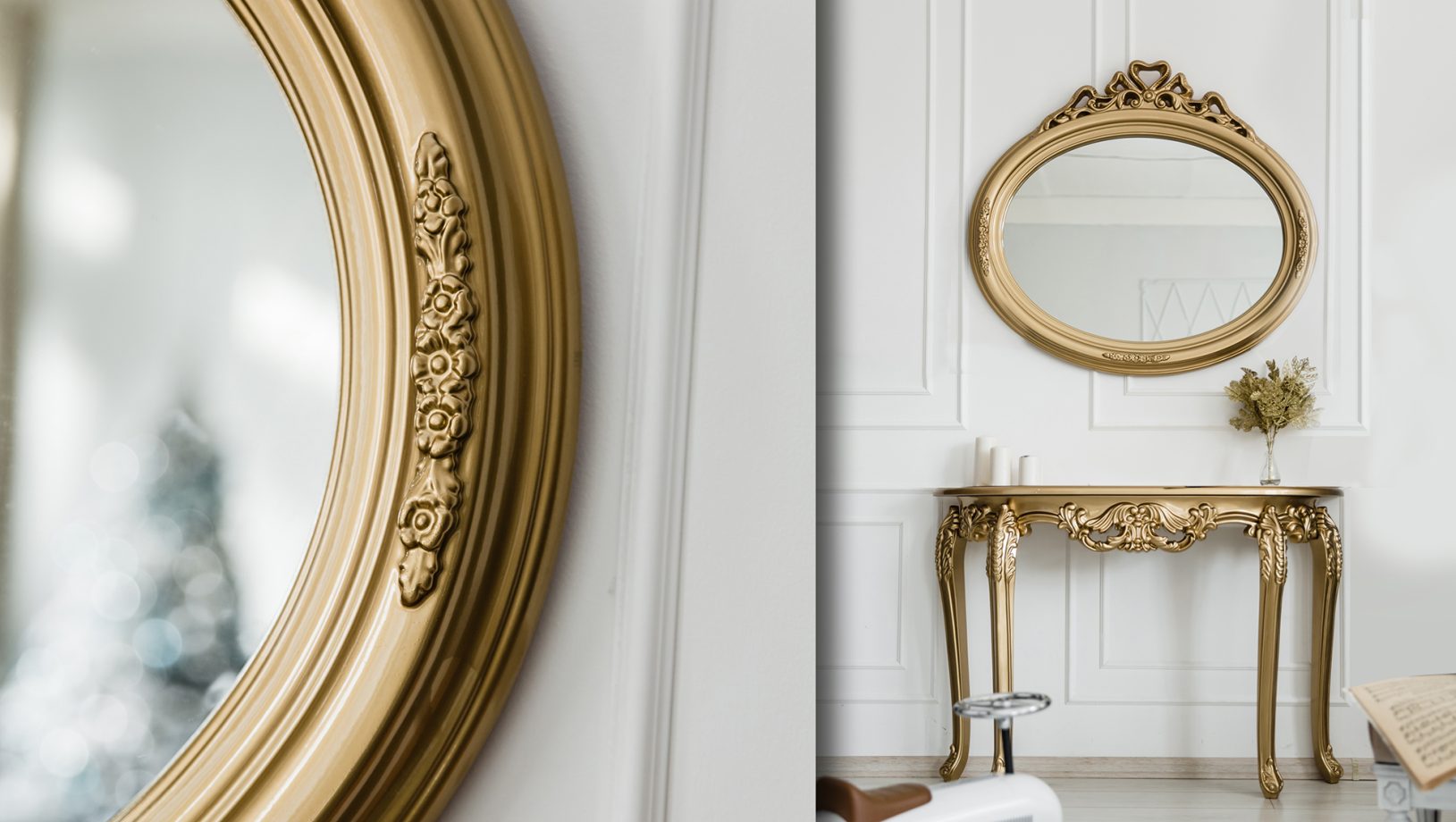 The decorative frame elements are made of high-quality polyurethane — a strong, lightweight, and moisture-resistant material. It resists deformation, withstands temperature fluctuations, and maintains its flawless appearance even with long-term use. Thanks to its elasticity and fine detailing, polyurethane perfectly reproduces shapes and ornamental elements.