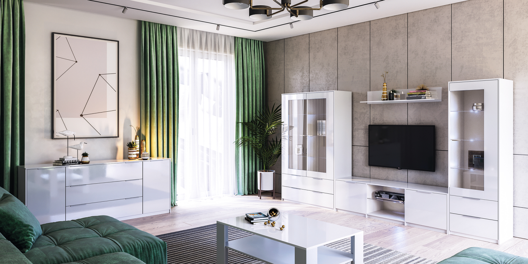 Your living room will be filled with an atmosphere of calm and harmony, because the white color contributes to this as much as possible. Strict and clear lines, reliable fittings and affordable price attract our customers and we always hear only positive feedback.