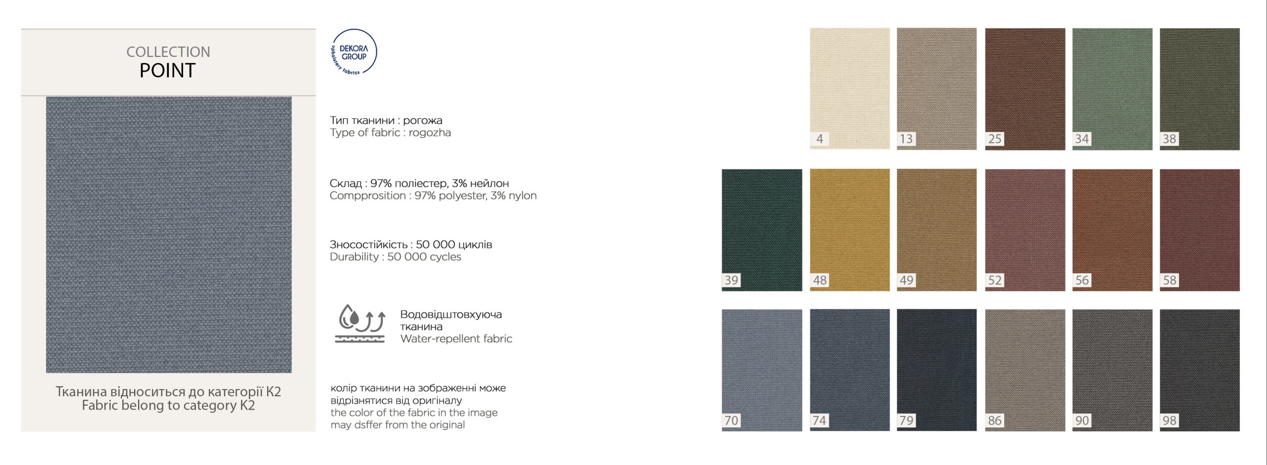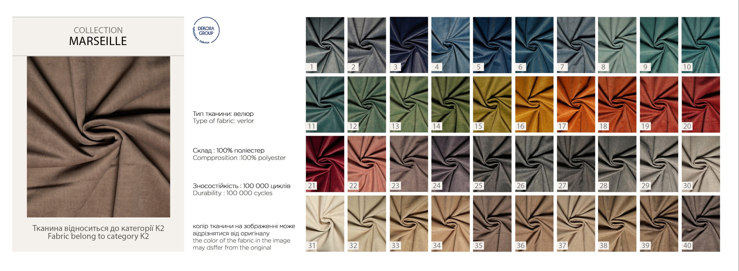 Ознайомтеся з палітрами тканин нижче та оберіть варіант, який закохає з першого дотику.